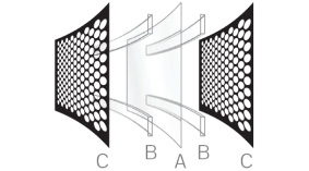 A) Diaphram, B) Spars, C) Stators