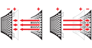 Opposite charges attract. Like charges repel. The diaphragm holds a constant positive charge.