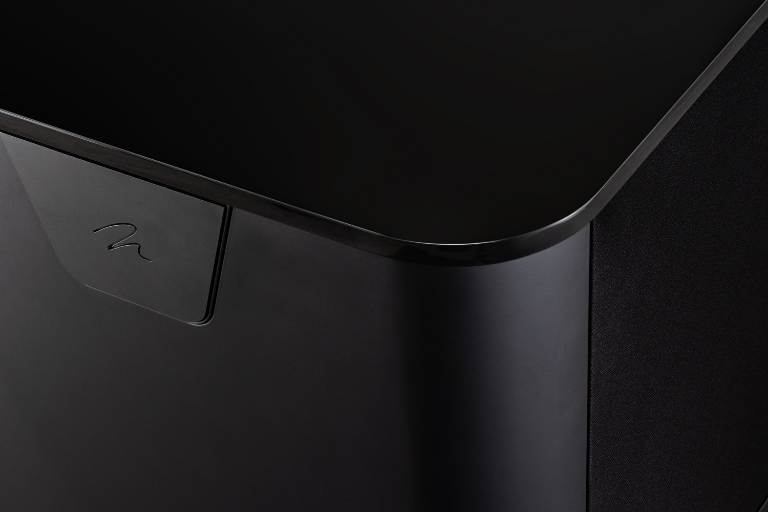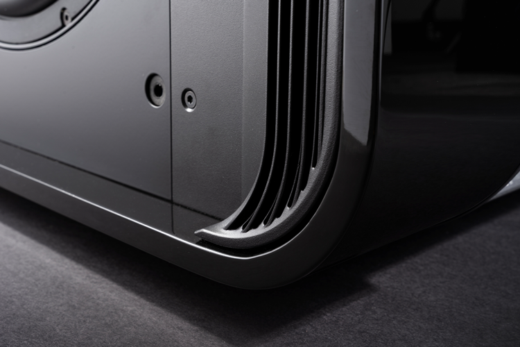 With Depth, MartinLogan designers wanted every side to be ‘the good side’ and chased the wild notion of treating the back of the sub as an opportunity to improve both performance and aesthetics. The team came up with an elegant solution; a completely concealed amplifier design  utilizing convection cooling to help keep things running at optimal levels. The decorative trim pieces on the back edges of the cabinet are actually extruded aluminum heatsinks. These also intake cool air from the room while exhausting the hot air generated by the amplifier, further reducing operating temperatures during the most demanding content. In another fusion of form and function, the inputs are located on the rear bottom edge of the subwoofer, neatly concealed inside an extruded aluminum trim piece. This allows for more discrete cable management by placing the cables closer to the floor while also providing ample clearance to accommodate a variety of power and signal cable options.