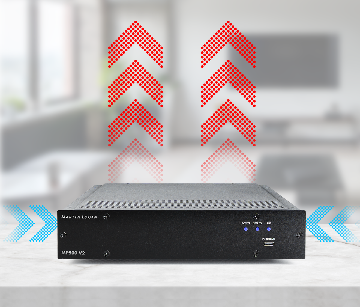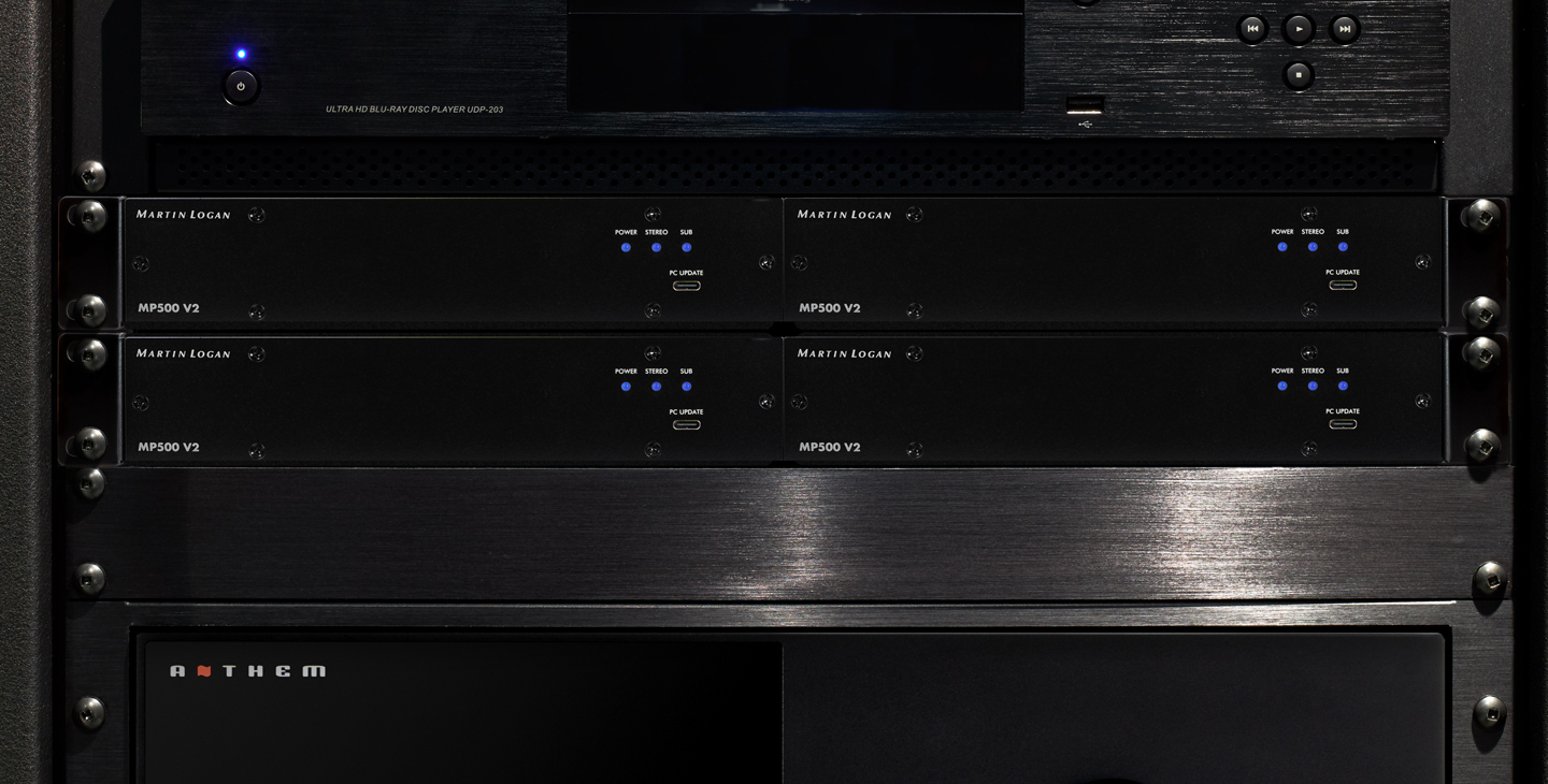 The most obvious benefit of increasing the subwoofer count is the higher maximum output potential, making sure that you have plenty of headroom in the system to better allow for the peaks in dynamic movie explosions or dramatic musical passages. In a nutshell, the more subs the better! To that end, MP500 V2 has onboard DSP presets optimized for both single and dual MartinLogan subwoofer configurations, meaning you can run up to two MartinLogan Custom Installation subwoofers per MP500 V2.
