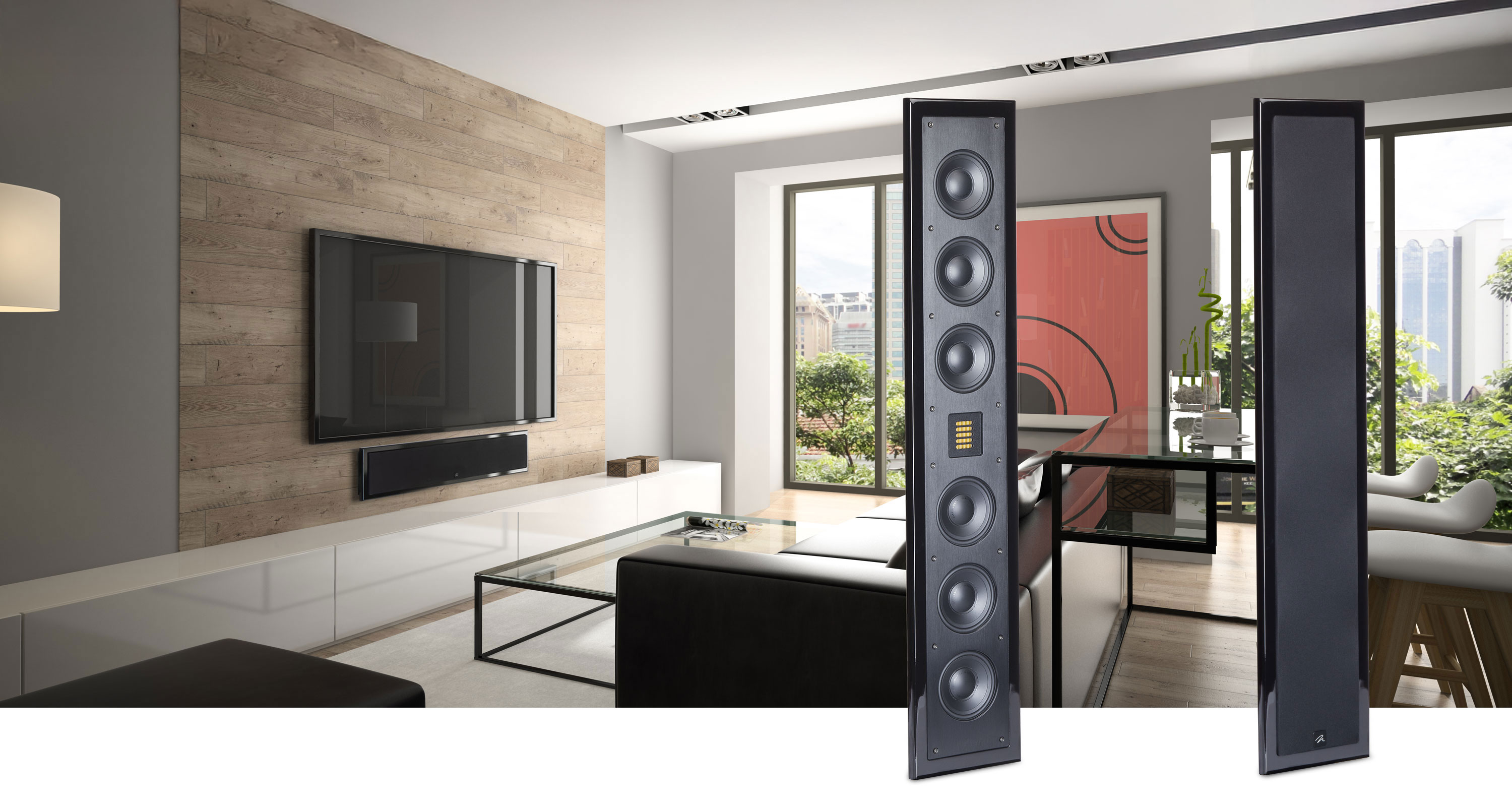 The secret to the Motion SLM XL's outstanding performance is the innovative dual 4-inch, ultra-slim fiber cone woofers and quad 4-inch high-velocity passive bass radiators, paired with a Folded Motion tweeter to create stunning acoustical alchemy typically found in much larger speaker systems. Hidden discretely underneath the grille, the drivers are held securely in place by a solid, black-anodized brushed aluminum baffle. The high-gloss black SLM cabinet is only 1.45-inches thin, for a total wall protrusion of 1.83-inches with magnetic grille and included wall mount bracket.